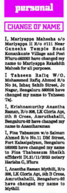 • Classified ads for name change in Delhi (budget-friendly & accepted)